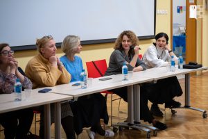 Первые два доклада научной части программы были объединены общей темой «Культурно-антропологические возможности психотерапевтического опыта: от статьи Ф.Е. Василюка (2007) до наших дней». Кандидат психологических наук, доцент кафедры индивидуальной и групповой психотерапии Т.Д. Карягина и кандидат психологических наук, доцент кафедры индивидуальной и групповой психотерапии В.В. Архангельская представили слушателям свои размышления о том, каковы основные вызовы профессиональной позиции гуманистического, понимающего психотерапевта в работе с «человеком психологическим» эпохи «терапевтического поворота». После двух докладов состоялась дискуссия с приглашенными экспертами, представителями различных психотерапевтических направлений. В обсуждении приняли участие кандидат психологических наук, экзистенциальный психотерапевт А.Н. Молостова, кандидат психологических наук, доцент кафедры индивидуальной и групповой психотерапии, психотерапевт в понимающем подходе Е.Н. Корнева, кандидат психологических наук, профессор кафедры клинической психологии и психотерапии, когнитивно-бихевиоральный психотерапевт О.Д. Пуговкина, кандидат психологических наук, доцент кафедры индивидуальной и групповой психотерапии, психотерапевт А.И. Сосланд.