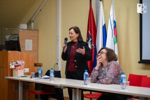 Первые два доклада научной части программы были объединены общей темой «Культурно-антропологические возможности психотерапевтического опыта: от статьи Ф.Е. Василюка (2007) до наших дней». Кандидат психологических наук, доцент кафедры индивидуальной и групповой психотерапии Т.Д. Карягина и кандидат психологических наук, доцент кафедры индивидуальной и групповой психотерапии В.В. Архангельская представили слушателям свои размышления о том, каковы основные вызовы профессиональной позиции гуманистического, понимающего психотерапевта в работе с «человеком психологическим» эпохи «терапевтического поворота». После двух докладов состоялась дискуссия с приглашенными экспертами, представителями различных психотерапевтических направлений. В обсуждении приняли участие кандидат психологических наук, экзистенциальный психотерапевт А.Н. Молостова, кандидат психологических наук, доцент кафедры индивидуальной и групповой психотерапии, психотерапевт в понимающем подходе Е.Н. Корнева, кандидат психологических наук, профессор кафедры клинической психологии и психотерапии, когнитивно-бихевиоральный психотерапевт О.Д. Пуговкина, кандидат психологических наук, доцент кафедры индивидуальной и групповой психотерапии, психотерапевт А.И. Сосланд.