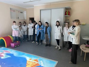 В рамках стажировки Тамара Витальевна и Елизавета Николаевна посетили Гродненский Областной Клинический Центр Психиатрии и Наркологии, где располагаются кафедра психотерапии и клинической диагностики и кафедра психиатрии и наркологии ГрГМУ. У наших преподавателей была возможность ознакомиться с новым оборудованием в кабинете коррекционно-развивающей работы с детьми – сенсорным ковриком. Коврик с проецируемыми на него изображениями позволяет в интересной для современных детей форме (похожей на мобильные видеоигры) проводить занятия с различной направленностью (релаксация, развитие моторных навыков, логического мышления и другие). Также Тамаре Витальевне и Елизавете Николаевне удалось посетить отделение пограничных состояний, познакомиться с врачами, ассистентами кафедры и психологами, работающими в отделении, больше узнать о системе работы с пациентами, проходящими лечение от тревожных и депрессивных расстройств, и даже поучаствовать в еженедельном обходе пациентов.