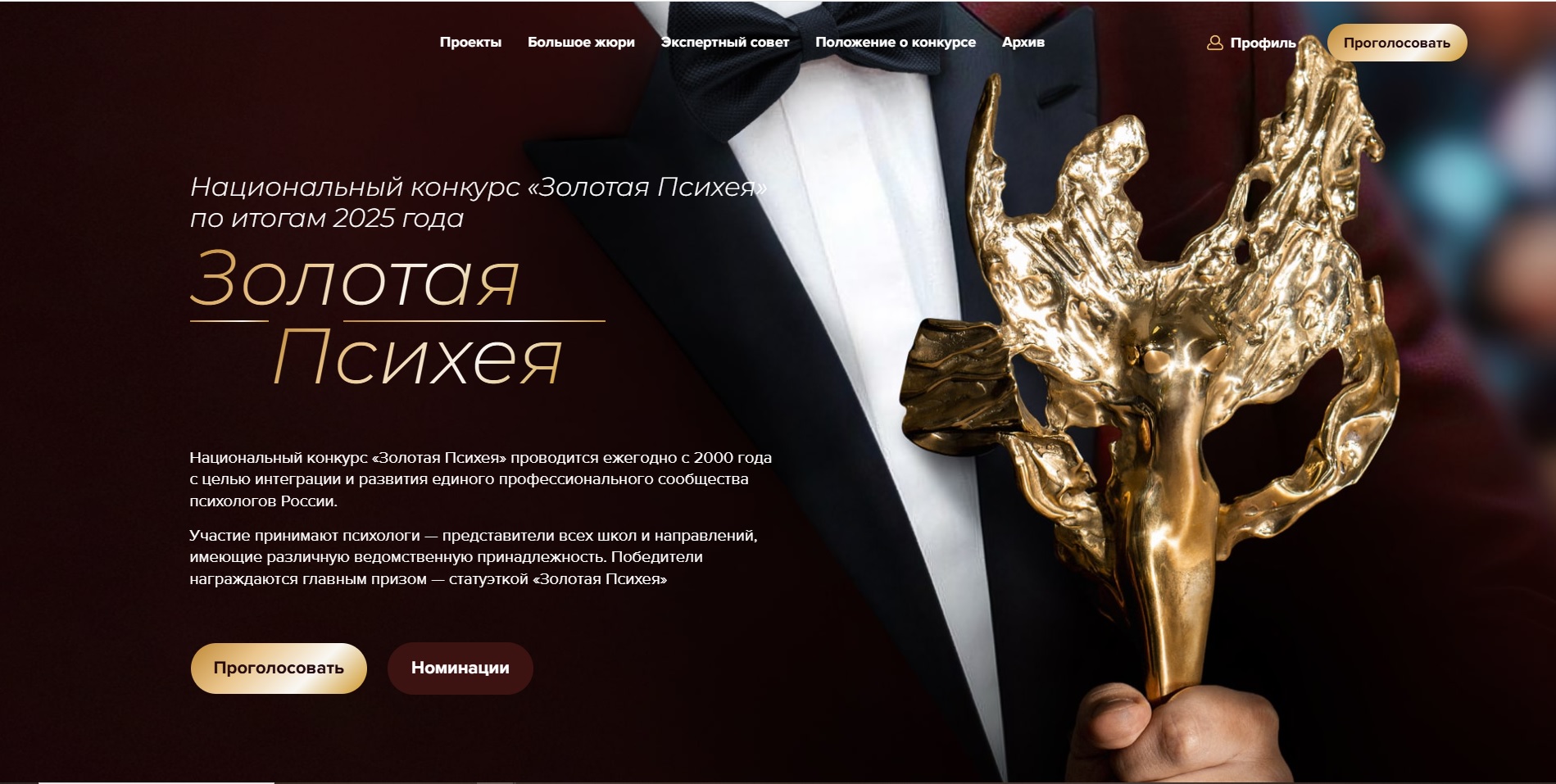 2 проекта преподавателей факультета «Консультативная и клиническая психология» принимают участие в национальном конкурсе «Золотая психея» по итогам 2025 года. На данный момент на сайте премии проводится читательское голосование за проекты, параллельно с которым проводится закрытое голосование Экспертного совета конкурса. Приглашаем принять участие в читательском голосовании и поддержать работы наших преподавателей.